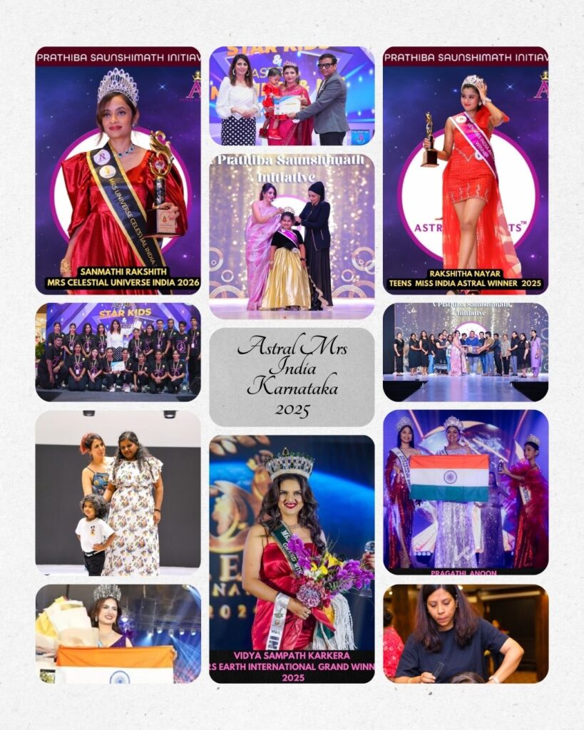 Founded by Pratibha Saunshimath, the first South Indian to win an international pageant, Miss & Mrs India Astral has grown into a prestigious platform empowering women of all ages. Evolving from Mrs. India Karnataka, this national pageant under Astral Pageants bridges the gap between national and international competitions, offering transformation through confidence, grace, and self-belief. It proudly introduces India’s first-ever category for unmarried women above 25 – “Lady India Astral”, alongside categories for Miss (16-25), Mrs. (22+), Elite Mrs. (40+), and Super Elite (60+).