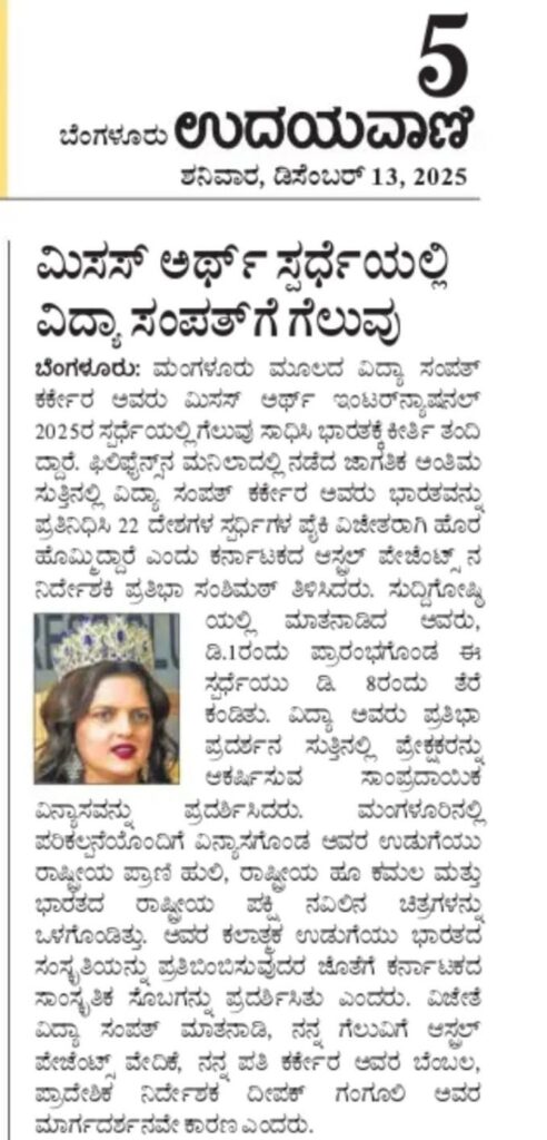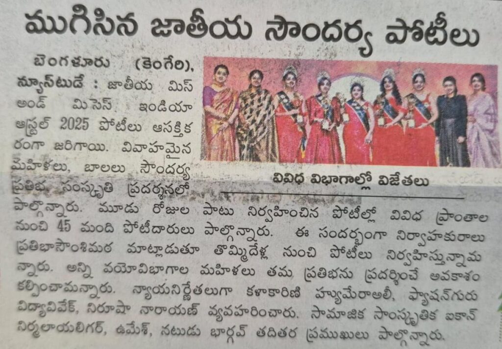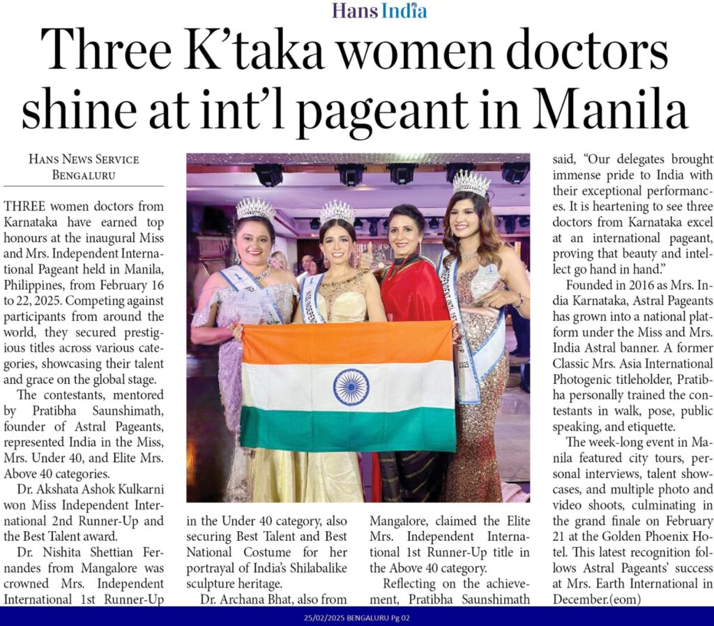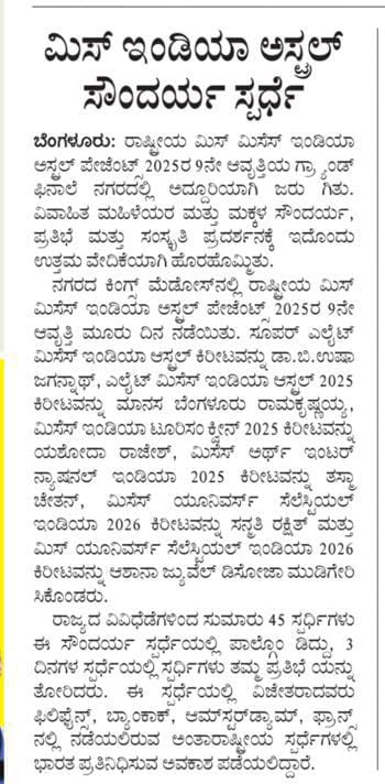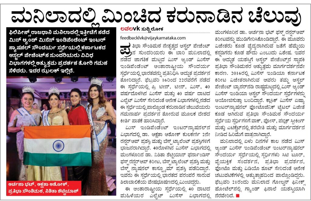 Media Coverage for National Level Mrs Earth International Winne